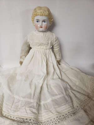 Vintage 23 039 039 Porcelain Blonde Hair Blue Eyes Doll Head Cloth Body Sewn In Ebay